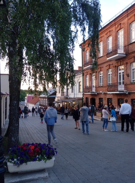 Мы начали прогулку с площади Независимости. С погодой везло, тепло и солнечно, но не жарко. Покружили у костёла, побывали внутри, по проспекту Независимости дошли до улицы Ленина и с удовольствие погуляли по Лавровскому предместью. Мне этот район больше всего понравился. Утром людей было совсем немного.
