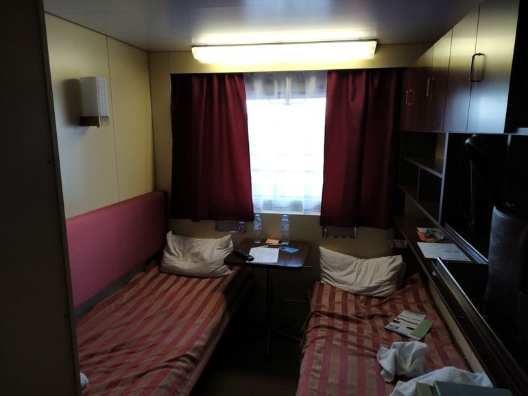 В каюте есть телевизор и холодильник. Питание на теплоходе по заказной системе, только на завтрак шведский стол. На таком большом теплоходе это не очень удобно. Много народу, всегда очереди. В 1 вечер был приветственный ужин, в последний капитанский. Меню ресторанное. На завтрак каждый день шампанское, на ужин тоже можно выбрать какой-то алкоголь. В течении дня на теплоходе разные развлекалочки от анимации. Нам очень понравился такой вид отдыха. Теперь думаем, а не отправиться ли закрывать навигацию в этом году))).