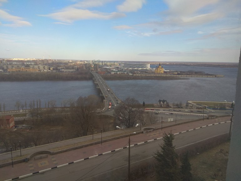 Билеты брали с питанием, можно было выбрать меню. Приехали в Новгород вечером и сразу в отель. Жили в "Азимуте" с прекрасным видом на стрелку Оки и Волги и новый стадион, построенный к чм.