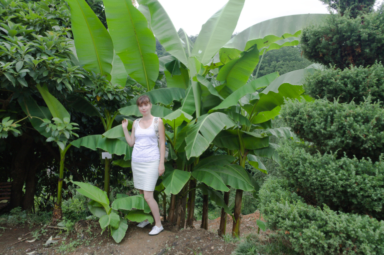 За 3 дня до отъезда решено было посмотреть ботанический сад. По прогнозу ожидалось прояснение и потепление. А из ботанического сада тоже есть выход к морю, и пляжи там считаются самыми чистыми в Батуми. Поэтому мы, на всякий случай, захватили купальники. Сам сад расположен в ближайшем пригороде Батуми и в нем есть 2 входа- нижний и верхний. Советую начинать путь с верха, мы так и сделали. Тогда бОльшую часть прогулки вы будете спускаться вниз. Лишь в одном месте придется подняться по большой лестнице, но это лучше, чем все время идти в гору. Мне, честно, было жаль людей, которые шли снизу. По саду курсируют электромобили, но тогда теряется весь смысл прогулки. При быстром проезде рассмотреть все хорошенько не возможно, а уж прочитать подписи и подавно. Сад мне очень понравился! При входе дают карту. Есть основная асфальтированная тропа, с нее можно сходить на множество тропок. Мы не рискнули, т.к. после дождей там было грязновато. По пути есть лавочки, беседки, питьевые фонтанчики, в одном месте обустроена большая беседка для пикника. Еду лучше брать с собой. Все растения подписаны, парк разделен на несколько зон по происхождению растений.