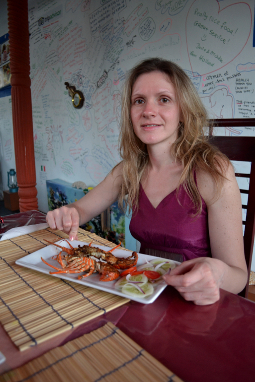 В первый вечер мы пошли в кафе. Нашли там лобстеров по 500 р за штуку. Небольших, с ладошку. Я никогда раньше их не пробовала. Поэтому решили себя побаловать ))