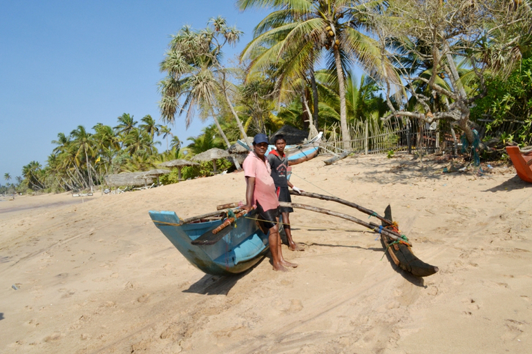 Гуляя по пляжу, мы встретили рыбаков, которые показали нам свой улов. В море рыбаки выходят на узеньких лодочках. Местные жители очень приветливы, через пару дней мы здоровались уже с половиной улицы.