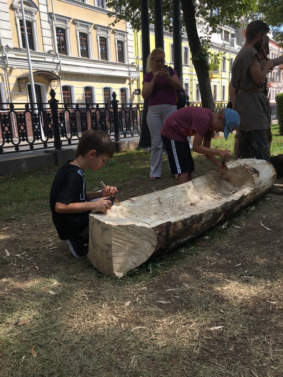 Чем занять ребёнка в поездке?Фестиваль "Времена и эпохи". И мы, и мы там побывали. Вот не могу остановиться нахваливать Москву с ее кучей мероприятий, интерактивов и тд. Прошли 8 локаций, 9 км. Самые интересные на взгляд детей - это каменный век (номер 15) и историческое фехтование (номер 8). В каждом часа по полтора провели. В каменном веке: стреляли из лука, бросали копье, долбили лодку с помощью заточенной с одного конца палкой и куска камня, передвигали камень-груз с помощью бревнышек и рычага. Оказывается лодку долбить не так-то просто, сын сдался через минут 5 после неудачных попыток, огреб небольших люлей за нытье, его самоуверенность вернулась после выстрелов из лука, первый выстрел в яблочко, второй немного промазал, но тигра "завалил".)) Короче прошли небольшой курс истории 5 класса.