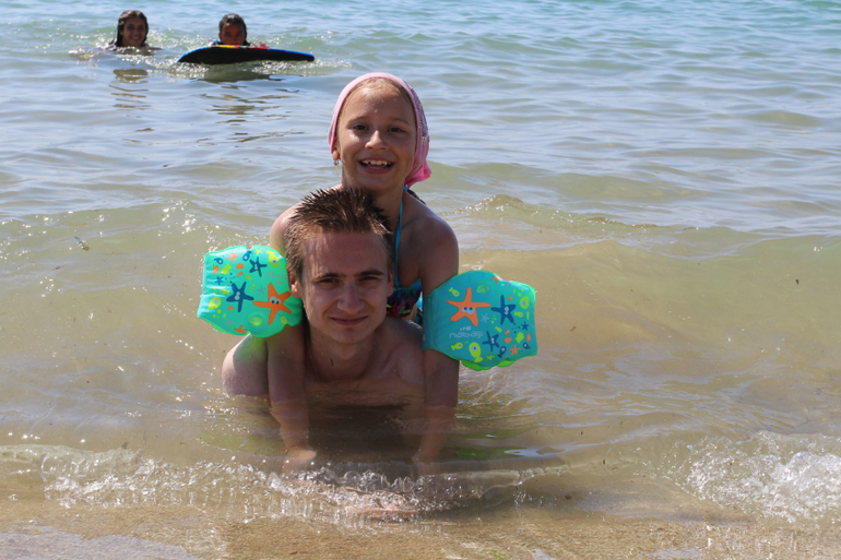 море чистое, пляж песок, глубина не сразу - есть где поплескаться детям, в общем, не жизнь, а сказка)))