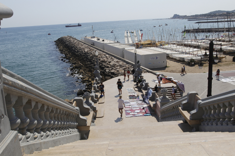 очень много чернокожих торговцев, они конечно мешают, но вполне безобидные. Полиция их периодически гоняет и на пару дней они исчезают, потом появляются снова