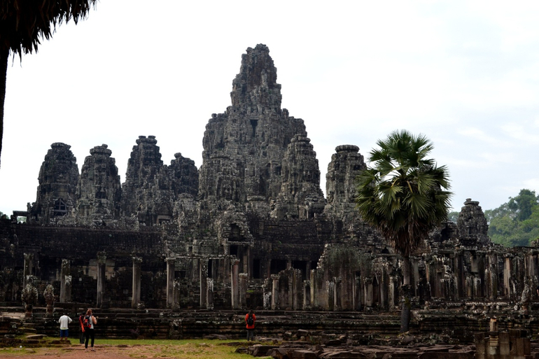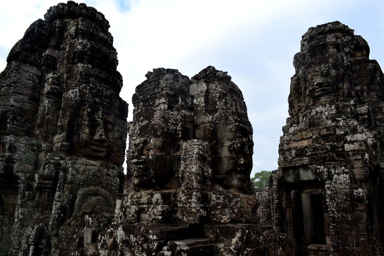 Это храм Байон, второй по величине храм Камбоджи. Храм имеет 52 башни. Каждая из них увенчана четырьмя огромными, обращенными на все четыре стороны света человеческими ликами.