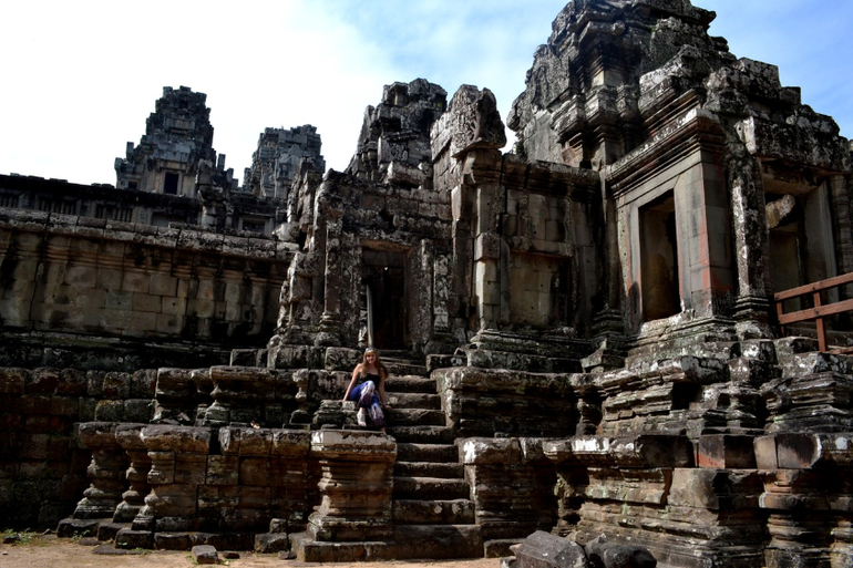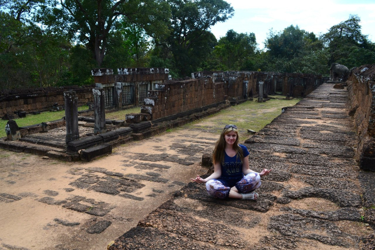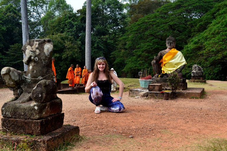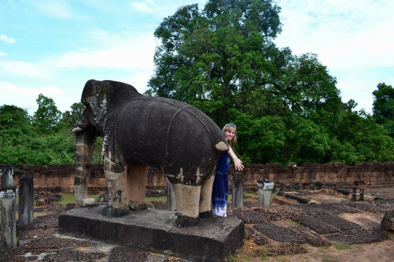 Это храм Восточный Мебон. Мне он больше всех понравился. По энергетике, хотя я циник, практик, рационалист и инженер. И во всякие энергетики не верю 🙂. Короче, мне там было хорошо. Я пыталась приделать слону отпавший много веков назад хвост.