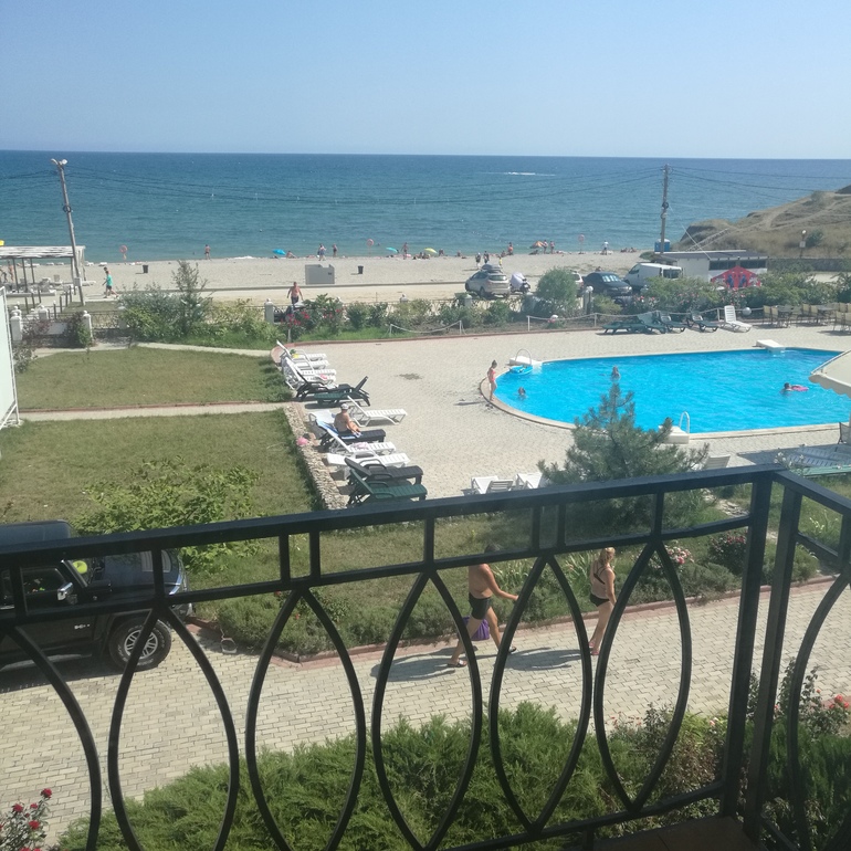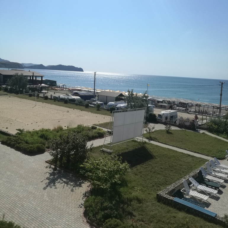 Каждый вечер мультики и фильмы для детей. Мы с балкона смотрели) на саммом деле все ближе чем на фото. На территории есть кафе ..вкусно, волейбольная и детская площадка.