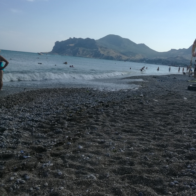 только в этом месте в Коктебеле самый широкий пляж и меньше народу.
