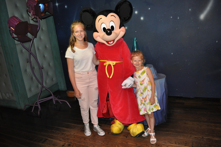 Все с ушками Микки от мала до велика)) приезжают большими семьями.