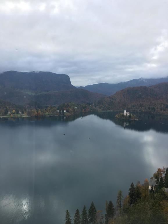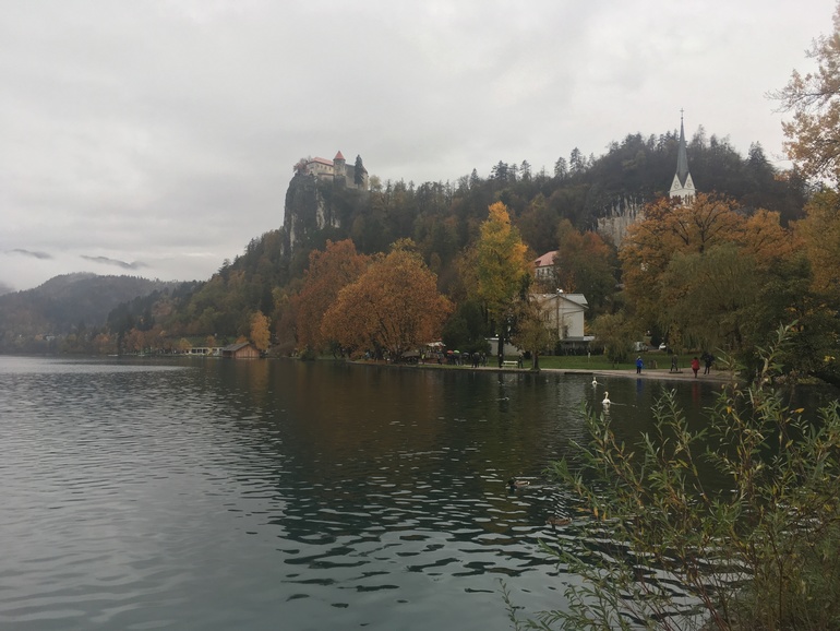- 3 ноября - вкусно позавтракав мы пошли опять к озеру сначала кататься на поезде вокруг него и по самому городку Блед;