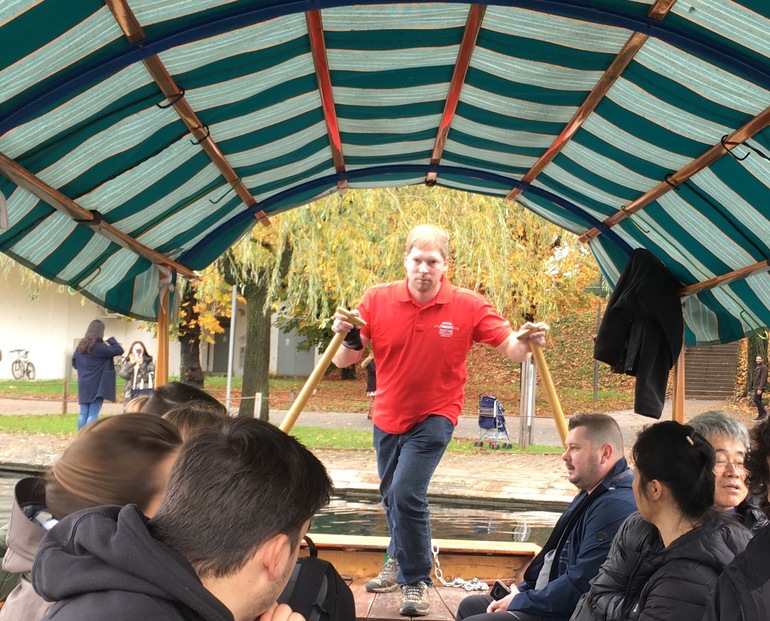 На такую лодку помещается человек 20 и могучий богатырь гребёт и везёт всех без какого-либо мотора! Нам повезло, во время плавания наконец-то вышло солнце и озеро заиграло всеми красками осени. Погуляли на острове,