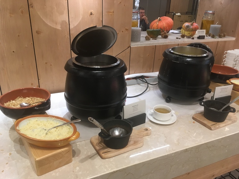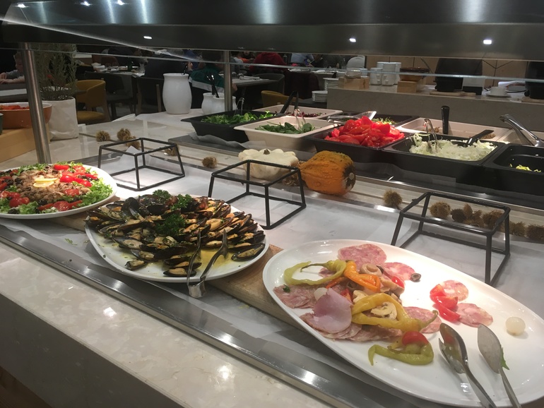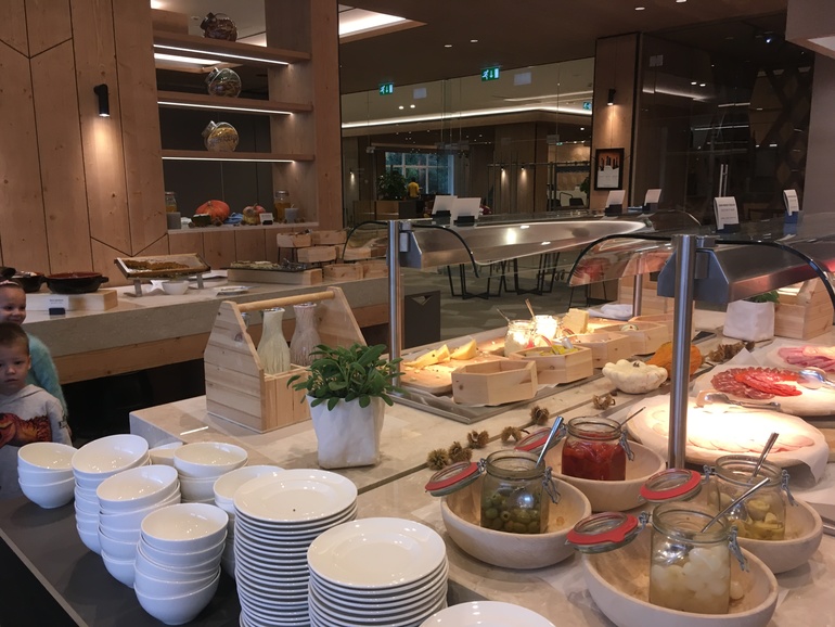Завтрак проходил в зале с видом на озеро и мне понравился. Было и «соленое» и «сладкое»,
