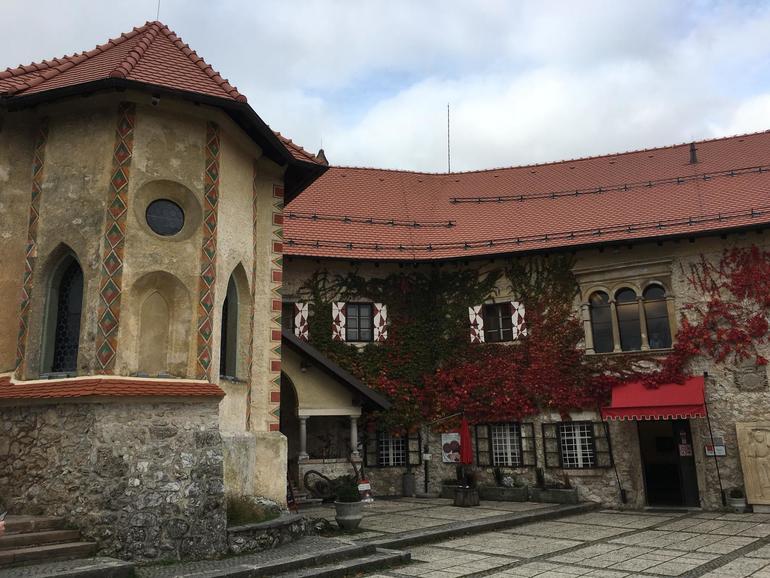 Затем мы отправились к замку Блед. Первое упоминание о замке датировано 1011 годом - старше Москвы. Это небольшой замок, но на его примере можно показать ребёнку как устроены замки. Внутри также хороший музей истории Блед, кузница, винный магазин, печатная мастерская (в ней старший сын сделал себе отпечаток - закладку для книги).