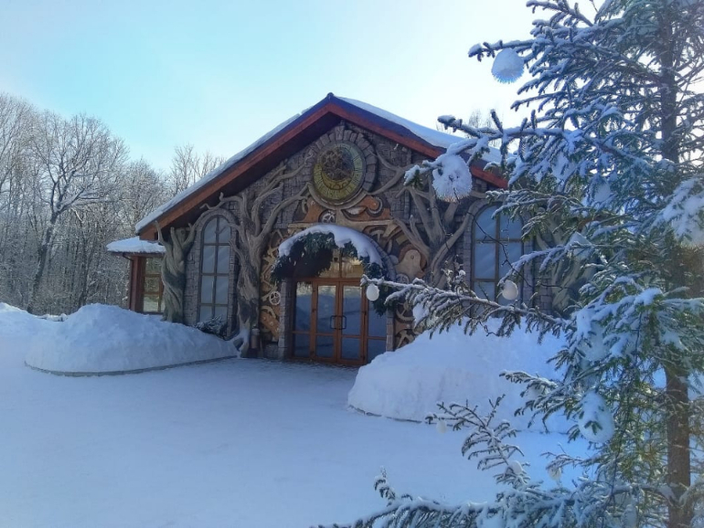 Отель в лесу, территория небольшая, два здания. Основной корпус с номерами и бассейном. И здание ресторана. Оформление на 5+. Чистота и уют на 5+. Питание нам тоже понравилось. Утром сходили в бассейн (были одни), есть хамам, сауна.