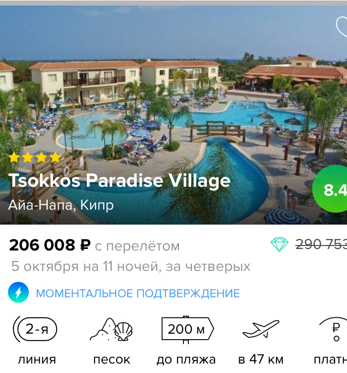 В Турцию ездим каждый год на осенние каникулы ребенка. Надоело до чертиков. А на Кипре просто не знаю что еще смотреть. Сегодня весь день в очередном поиске, это уже мой....десятый, наверное, поиск. С учетом всех проштудированных тем здесь и не только, советов и рекомендаций знакомых. Не спорю, есть отели в районе 200 тыс. на наш состав и даты, но не зацепил ни один. Напр. в Протарасе более-менее понравился только Малама, да, в бюджет укладываюсь, но не зацепил....Вот не готова выложить 200 тыс. за отель, который не устраивает на 100% всем. В Турции я такие нахожу, там выбор что ли больше.... А на Кипре... то все супер, но пляж отстой, то пляж нормальный, но вторая линия и пешком 15-20 мин, то стройка рядом...то еще что....в общем, в тех, где все сошлось под мои требования, ценник выше чем я ожидала чуть ли не в 1,5 раза. Просто печаль. А тратить больше 220 тыс. я не готова. Как уже писала, с топливным сбором, трансферами, предотпускными покупками и проч. это и так выйдет в 250.