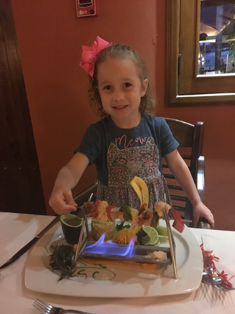В мексиканском ресторане на удивление не все было острым, а некоторые блюда даже оказались вкусными. Более того, там мы застали певцов, которые за вознаграждение исполняли по вашему желанию и запросу песню. Отвлекли Софийку на время - музыку она любит)))