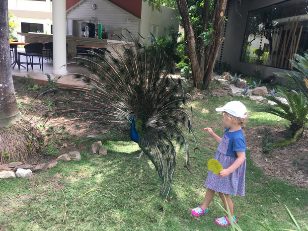 Видом павлиньего хвоста никого, конечно, уже не удивишь. Но мы все равно пытались сделать фото))) Кстати, нам кто-то из постояльцев отеля потом рассказал, что есть штраф за выдернутые из павлиньего хвоста перья - раньше штрафа не было, и такие прецеденты случались частенько.