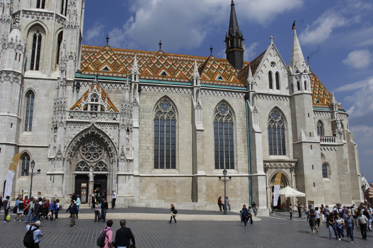 Читала, что во времена захвата Венгрии турками около 150 лет он был главной мечетью Буды. И вообще, он много-много раз перестраивался, и в итоге получился очень красивым. Обратите внимания, какая красивая черепица на крыше. И она очень красиво играет на солнышке)