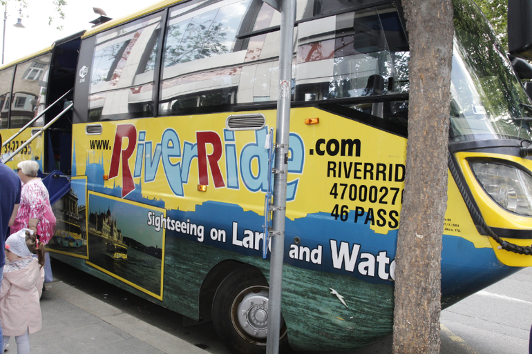 Оказалось, что очень даже не зря обратили, потому что такой аттракцион был у нас в первый раз)))) Не знаю как он правильно называется, что-то типа водного автобуса. Экскурсия, на которой возят сначала по городу, а потом на этом же автобусе плывут по Дунаю! Очень необычно!