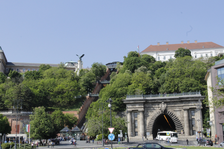 На Будайскую крепость можно попасть двумя способами - пешком в горку и на фуникулере. Но сначала для этого следует перейти на другой берег по Цепному мосту