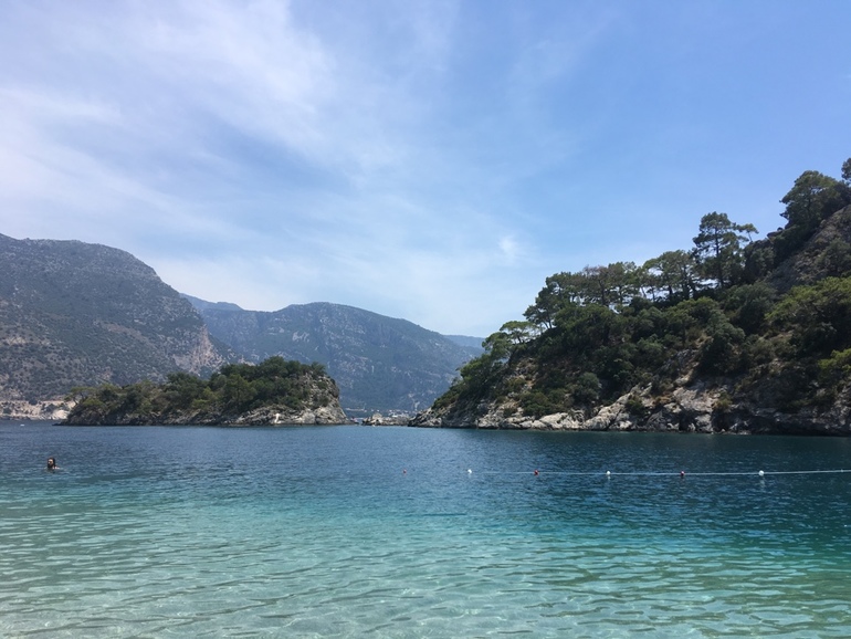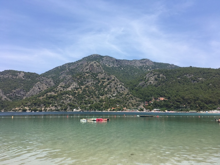 И конечным пунктом этой экскурсии было посещение грязевых ванн, оттуда у нас фото нет. Также сами мы ездили в Олюдениз, от отеля доехали на автобуса до Фетхие, а оттуда уже в Олюдениз. Олюдениз это чудесная бухта с кристально чистой водой, потрясающе красивого голубого цвета. Это заповедная зона, вход в парк платный , вроде 6 лир, лежаки платные. Олюдениз обязательно нужно посетить! Место очень красивое!