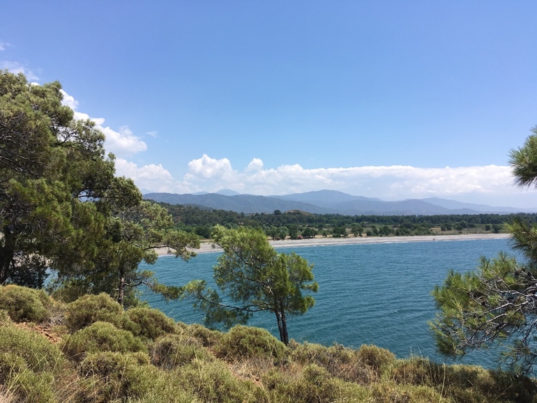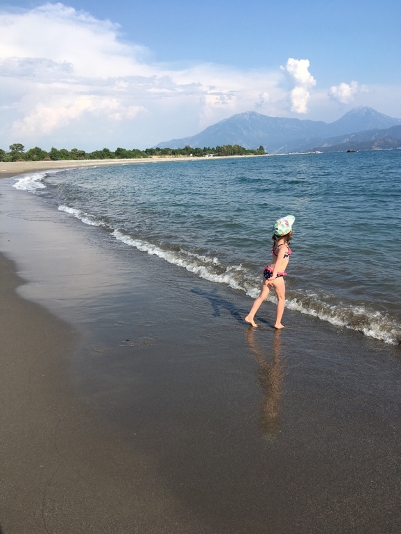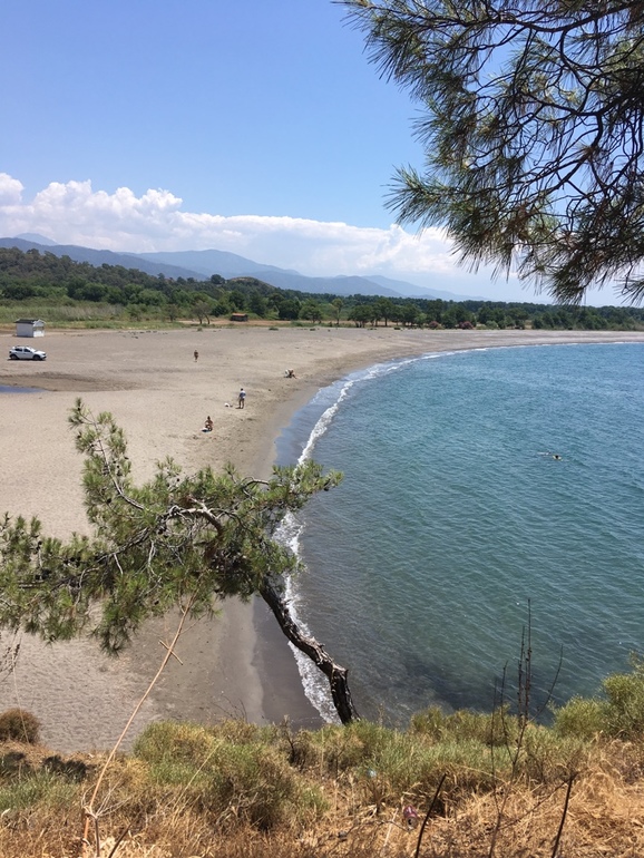 Плывем дальше, приплываем на пляж , где встречается Эгейское и Средиземное моря там же в них впадает река Дальян. Там нам дали около часа и мы купались.