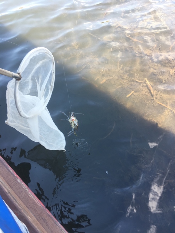Ловили голубых крабов.Крабов ловят на специальные удочки -большая катушка с леской на неё привязывают кожу курицы, краб захватывает ее клешнями после чего его вытаскивают из воды( наш папа был первым , поймавшим краба) ! Наловили крабов, выпустили , а дальше нам приготовили крабов по заказу ( это те которые на специальных фермах выращивают) . Крабы вкусные, мягко нежное, дочке тоже понравилось!