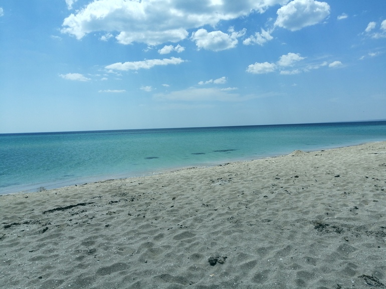 Ездили в Поповку. Вот это для любителей уединения. Можно и за 500 м друг от друга лечь. Имеется примесь ракушки в песке- коляется чуток.
