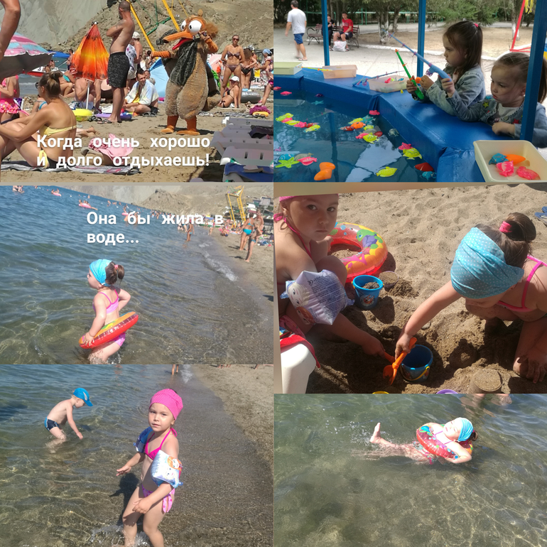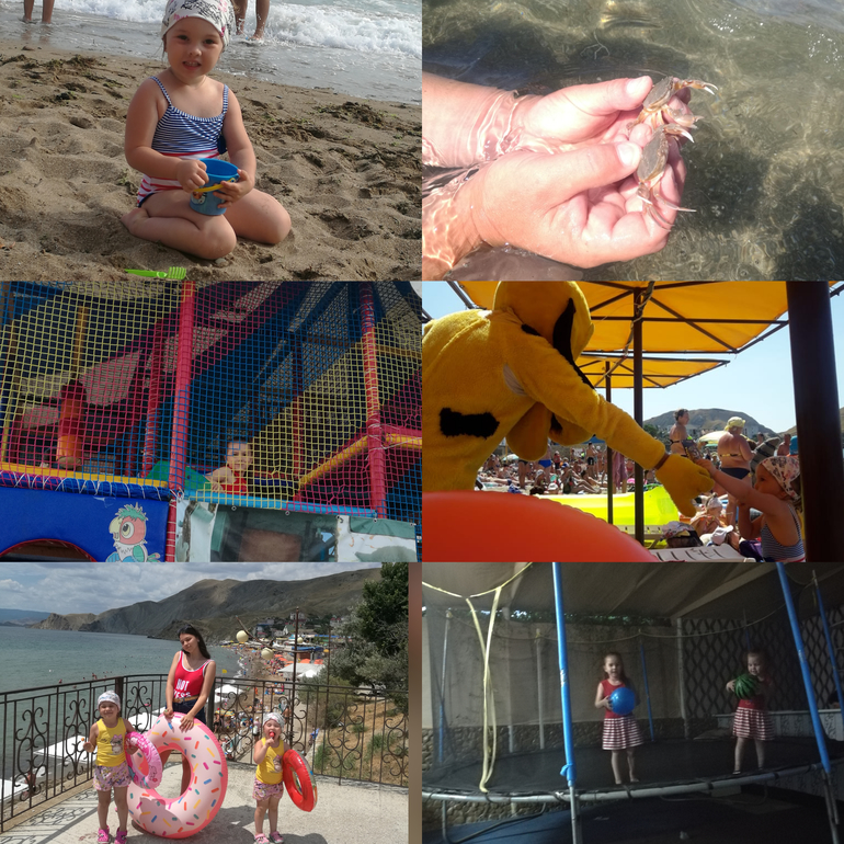 Только вход не очень там камни хоть и не большие ,но крупненькая галька. Там на самом деле много пляжей диких. Но я люблю комфорт..на центральном пляже есть одно место где не так много людей. А именно где платные лежаки)) вот там мы и были)) Песок конечно..был везде...в прямом смысле этого слова. Бррр носили баклашку что бы хоть как то смыть при выходе из пляжа с ног. Там нет колонок как в отелях. В общем я не люблю песок! Море кстати самое мутное было здесь. Как в принципе и везде где песок.Ну и теперь фото. Все в этом поселке ориентировано на детей даже в кафе батут был))
