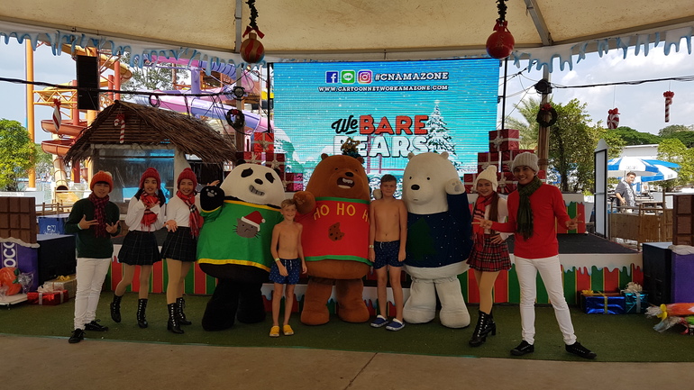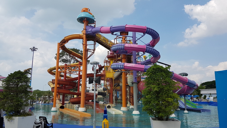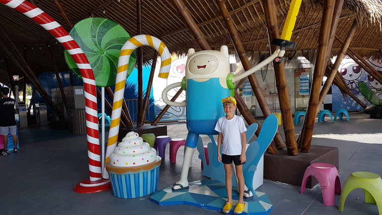 Долго думали в какой аквапарк поехать. Их в Паттайе 3. Один совсем старый в отеле паттайя парк мы даже не рассматривали. Оставались Рамаяма и Картун нетворк. Цена была приблизительно одинаковая. Старший сын любит мультики картуна....так что решено поехать туда.