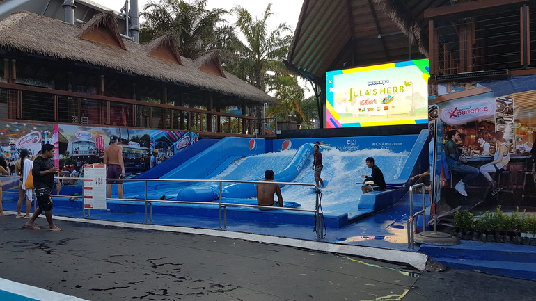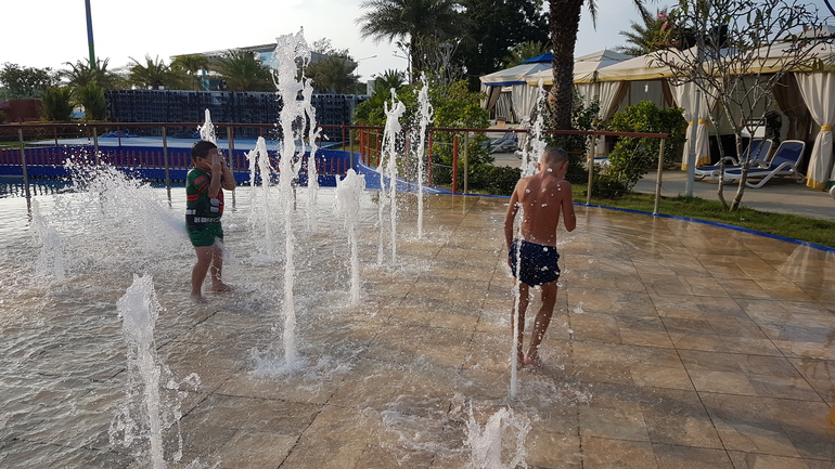 тут искусственная волна а потом куча фонтанчиков. Забавно.