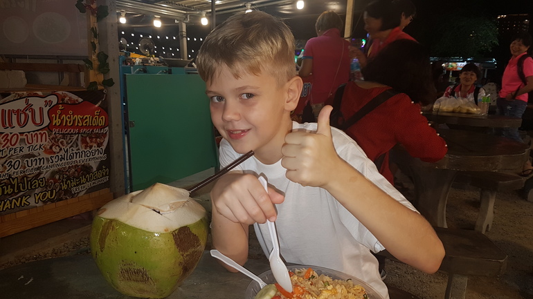Съездили мы и на ночной рынок. С детьми это сложно. Но абсолютно не интересно. Сплошной ширпотреб. На Самуи на воскресном волкине в разы лучше. Хотя народ ходит и что то покупает.