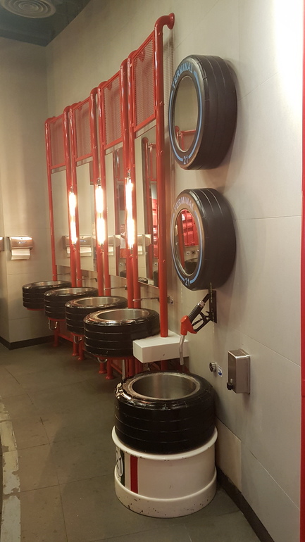 возле туалета)))) Италия. формула 1. И даже краны в виде топливных заправщиков))))