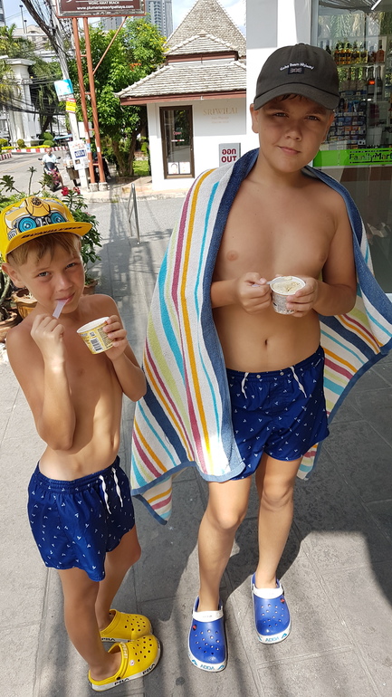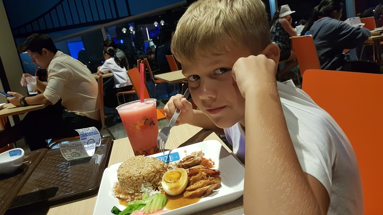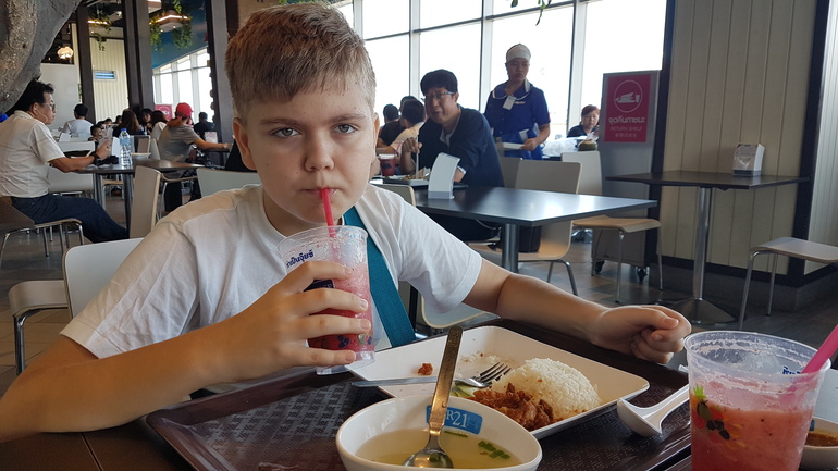 Погуляли, зашли на фудкорт...там дети увидели свою любимую курицу с рисом за 40 батт и арбузные шейки))) Что еще для счастья надо)))