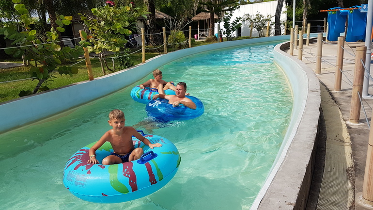 Но дети были счастливы! Вода теплющая))) А значит балдеем и ловим кайф)))) Дети плавают а родители по очереди на массаж)))