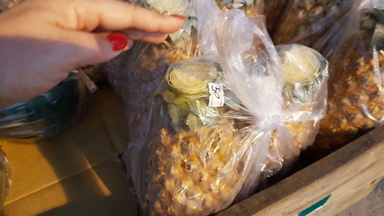 3 ананаса тоже за 50! Можно покупать уже чищенные.