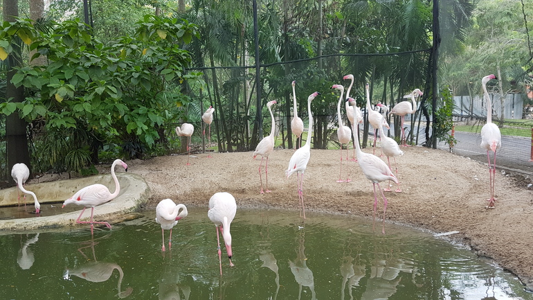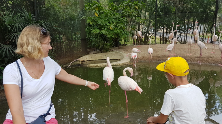 Здорово что можно заходить к фламинго. Они интересно реагируют на хлопки. Старший ребенок там долго развлекался)