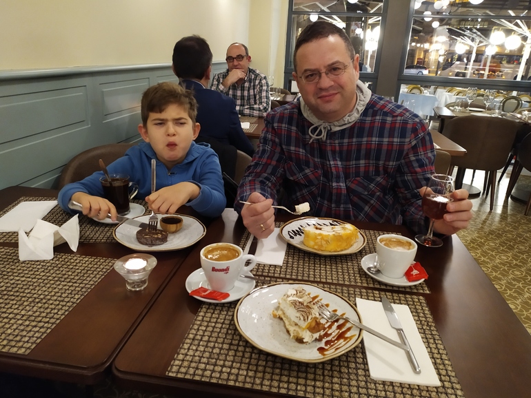 А после, чтобы попить кофе с пирожными, мы зашли в уютное кафе на другой стороне площади Свободы (plaça Liberdade).