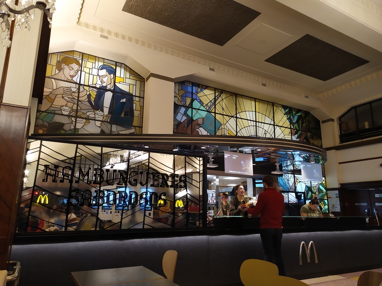 И вот историческое здание Макдональдса. Читала, что сперва жители были возмущены, что ресторан фастфуда приобрел это рафинированное здание, но потом соединение несоединимого стало изюминкой: