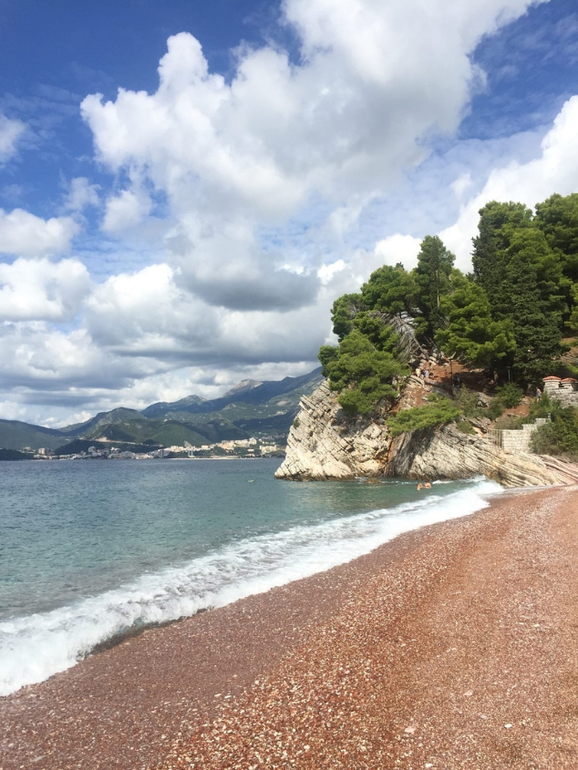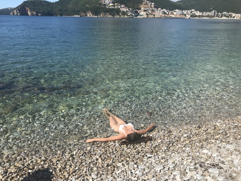 Единственную нормальную площадку мы нашли возле острова Святого Стефана, там, где дорогущий отель) Там же есть красивый парк и пляж, а ещё огромное количество стрекоз, они прям стаями летают.