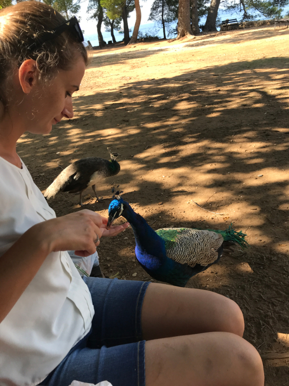 Позже выяснилось, что и павлины едят с рук морковь!