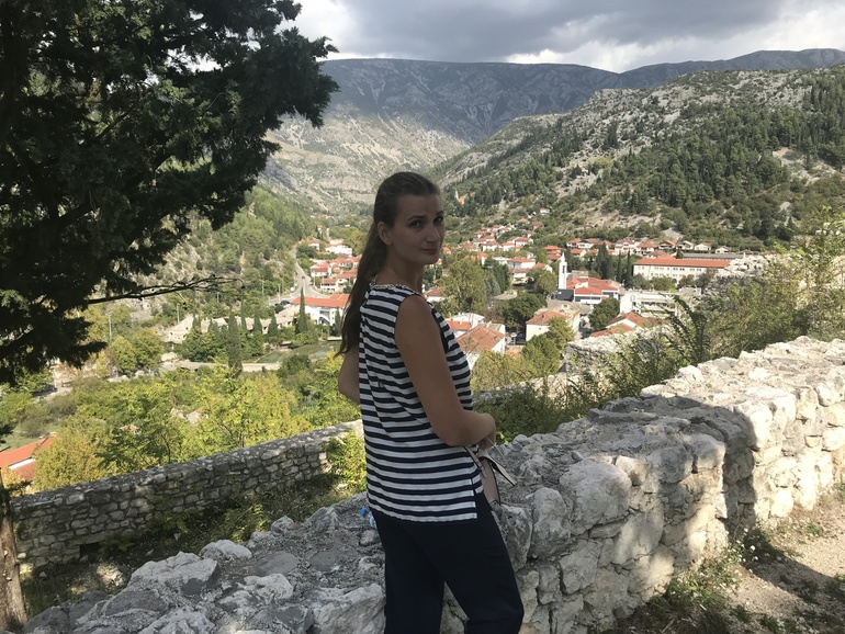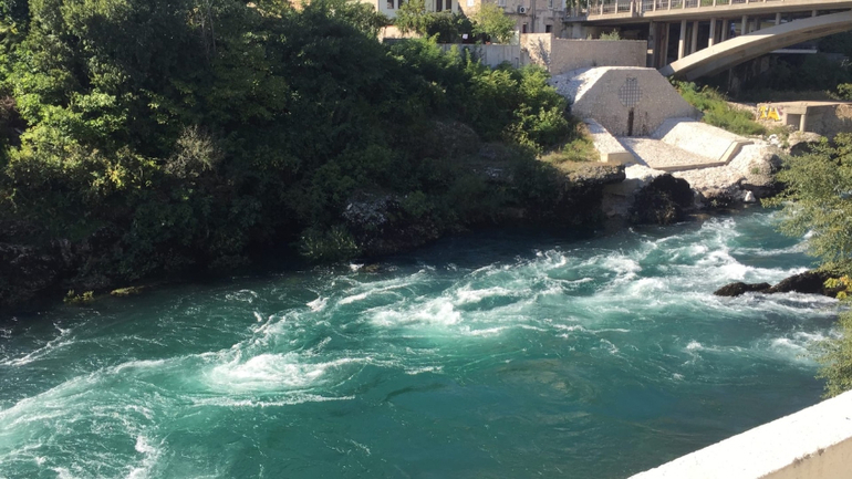 В Боснии и Герцеговине мы жили в Мостаре. Прямо на берегу лазурной реки Неретва. Снимали мы квартиру в центре, со спуском к реке.