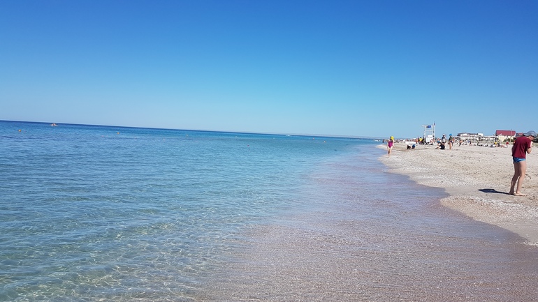 Мы в Поповке сейчас. Море очень красивое и очень холодное. На центральном пляже народу очень много, мы в стороне, тут меньше намного. Но никакой цивилизации, ни лежаков, ни зонтов, ни туалетов. Но нам нравится так больше. И живем мы прямо напротив.