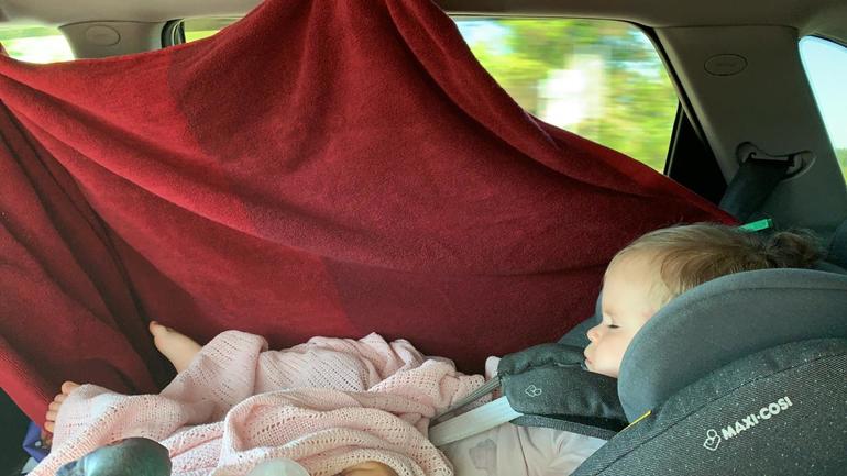 Из еды для Лиды брала банки большие (там типа прям блюда) семпер и гербер. Кукурузу отварную - она фанат, картошку, огурцы, Курицу в кляре, куриную лапшу в термосе. В машине ехал горшок, Лида была в трусах - оч жарко. Когда спала делала вокруг неё ширму из полотенца и мы включали кондер на полную(прищепки в машине очень нужная вещь!