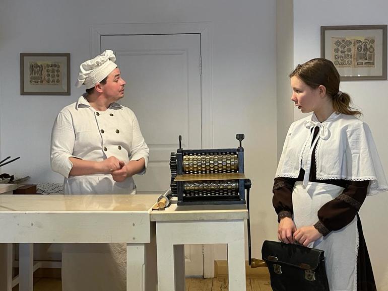 Ознакомление с музеем проходит так же театрализованно как и в Калачной,заканчивается чаепитием.