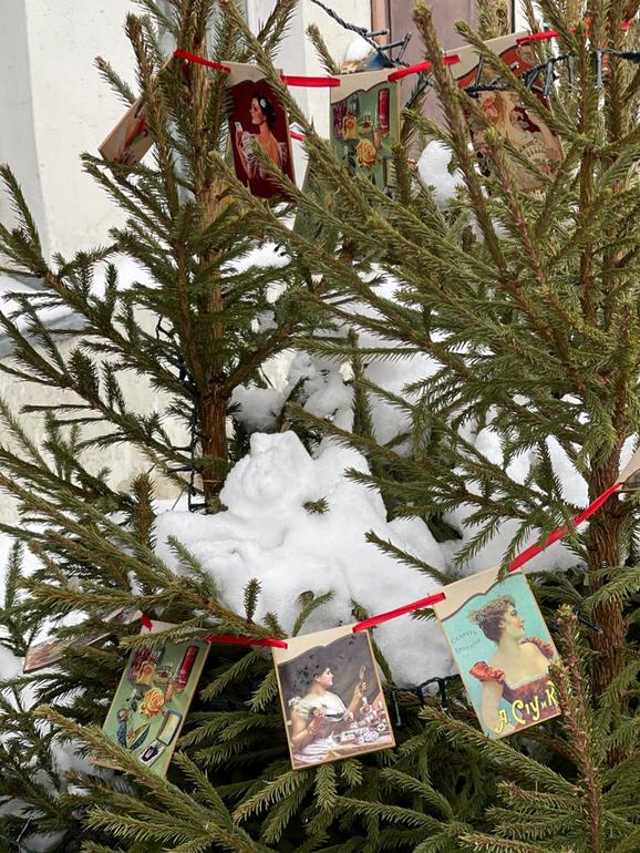 Так же продемонстрировали подарочную музыкальную коробку с ватными елочными игрушками