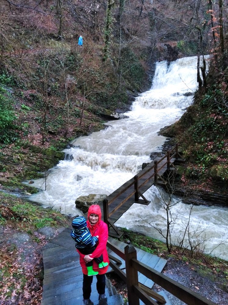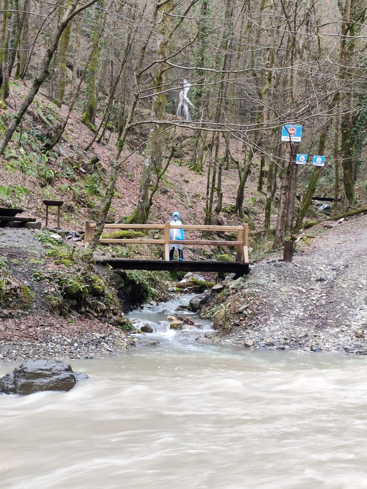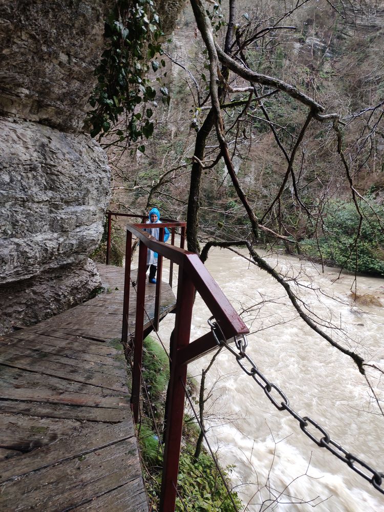 Ездили в Тисо Самшитовую рощу - каньон превратился в огромный грязный поток - по реке плывут прямо целые деревья, мощь потока впечатляет