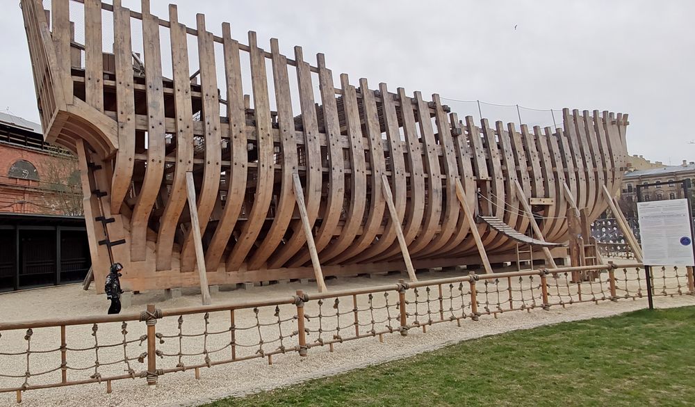 Погоду без дождя старались использовать для прогулок, поэтому сразу же поехали в Новую Голландию. Нам очень понравилось. Даже сейчас, когда нет ещё сидячего газона и закрыты некоторые зоны на обустройство. Корабль, по которому и мы сами и Тимур с удовольствием налазились, выше всяких похвал. Там даже камеры на нем есть и можно просто стоять внизу под навесом и наблюдать на экране за своим ребенком. Рядом детская площадка для детишек помладше. Чуть дальше большие шахматы, где мы тоже застряли надолго. А я думала, никто в них не играет обычно ).