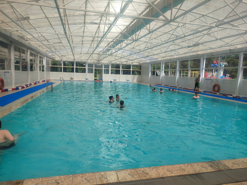 Очень теплый, но так как сделан по типу теплицы внутри очень влажно и жарко. Но для любителей теплой воды отлично. Детский и взрослый.